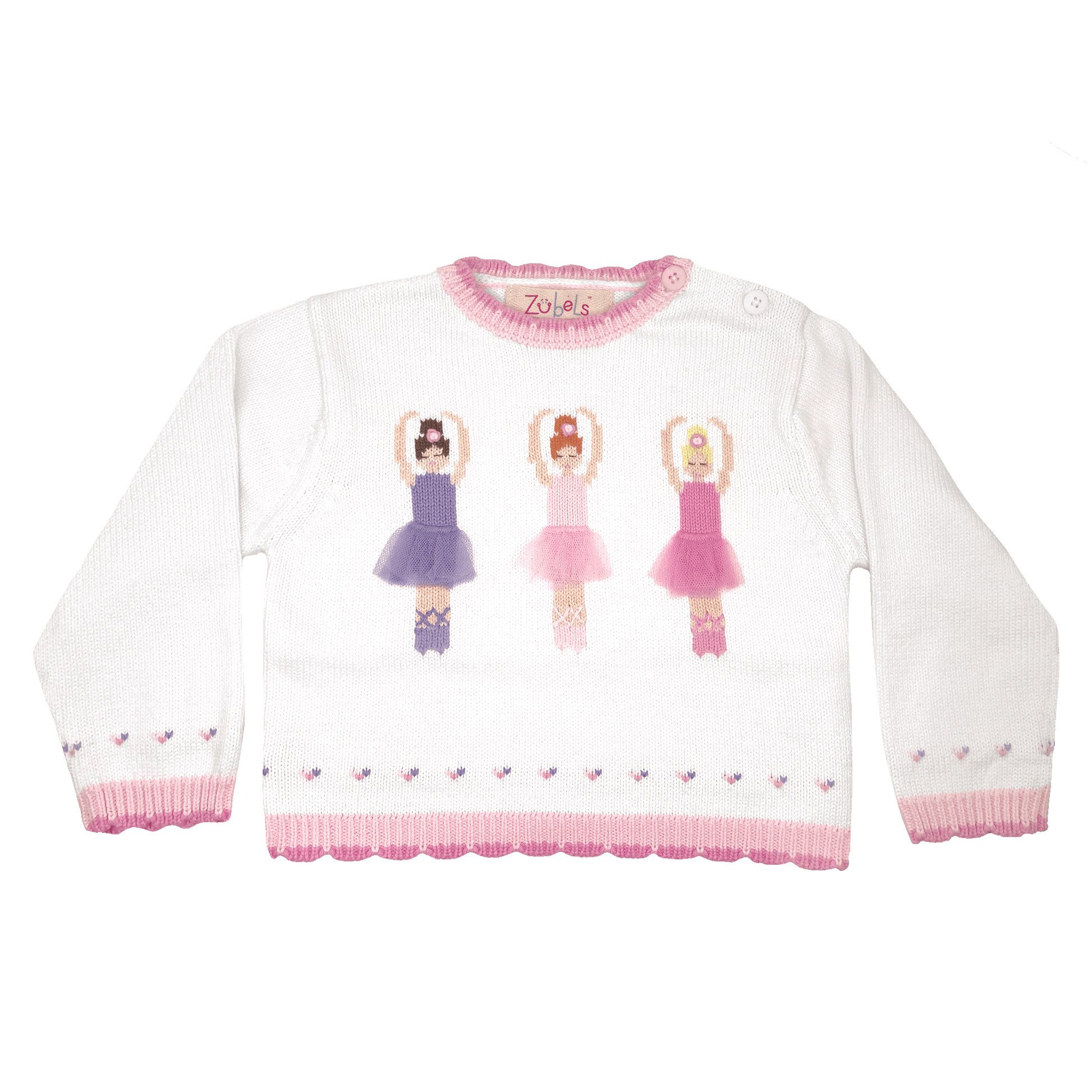 With 3-D tutu details this ballerina knit sweater is perfect for children that love to dance!