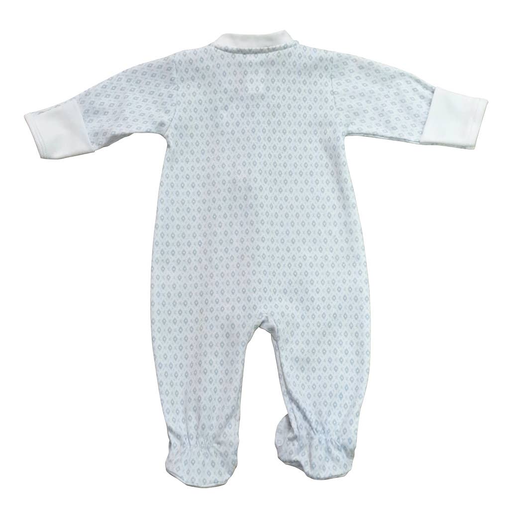 Blue Argyle with a dot print. Baby Footie. 100% soft Pima Cotton. Made in Peru