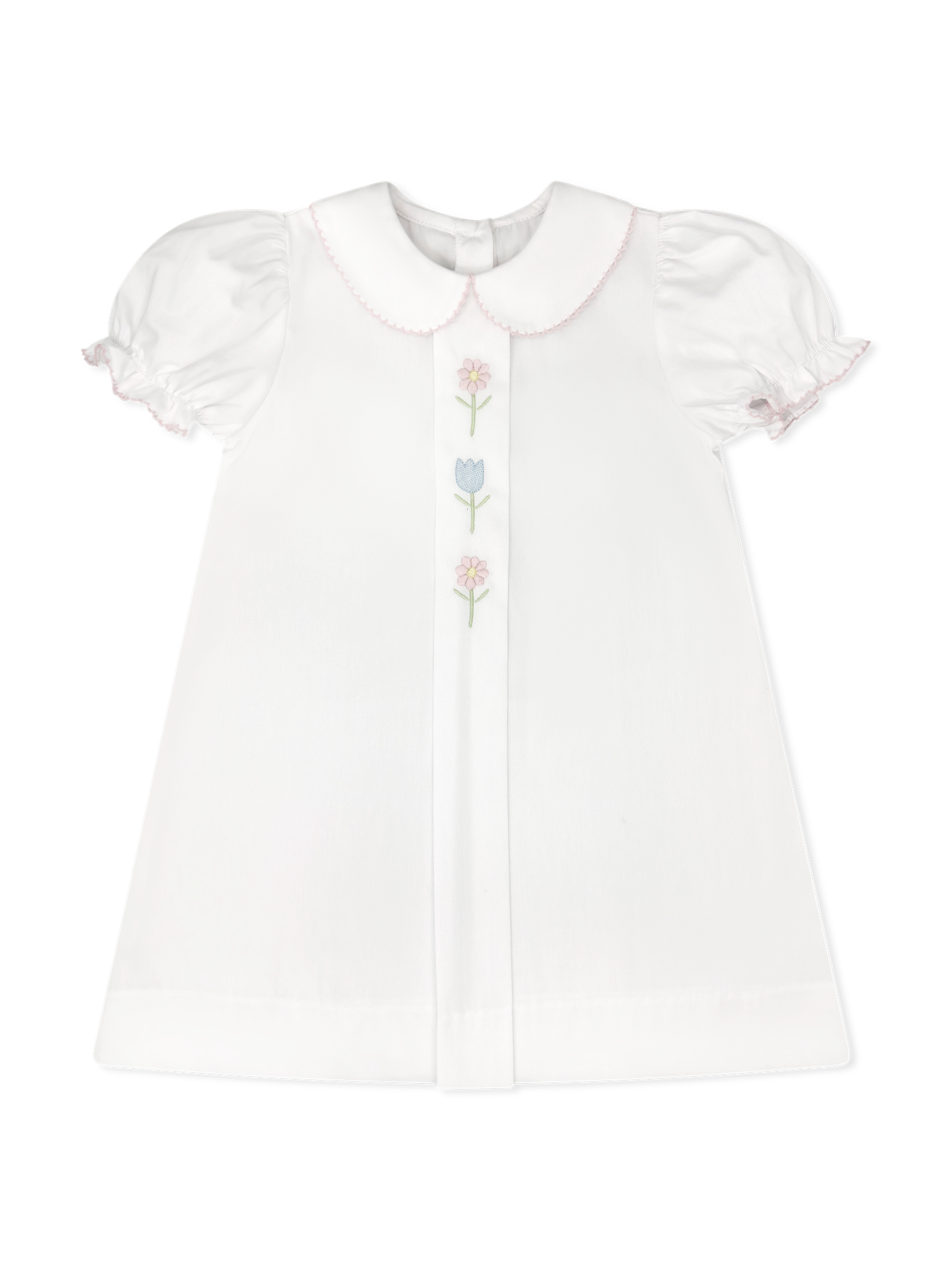 Bluebonnet Dress - White Pique with Floral Embroidery