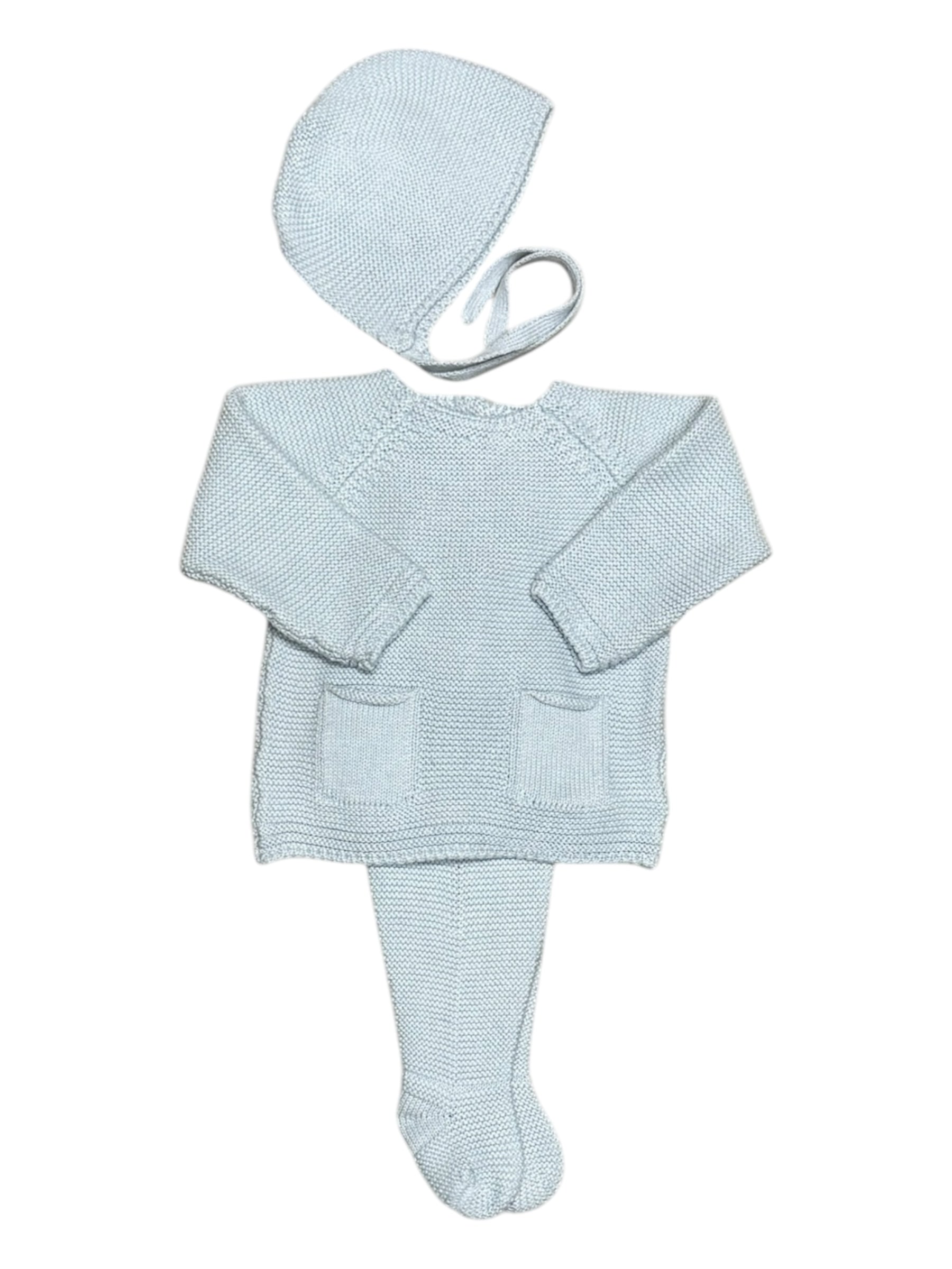 Light Blue Ribbed 3-Piece Footed Set
