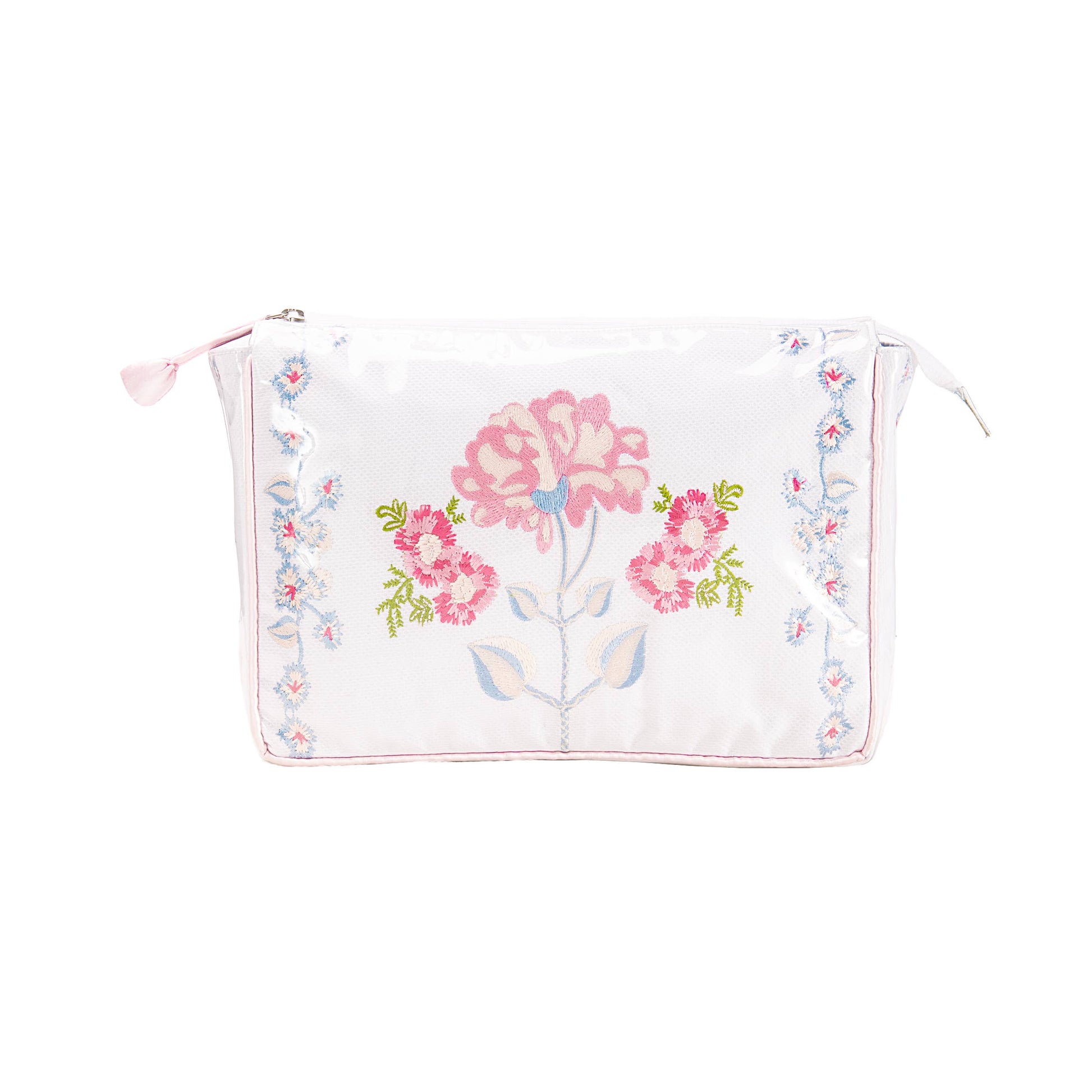 Our Embroidered Make Up Bag bridges the gap between our Train Case and Small Cosmetic Bag. This bag provides enough room to stow away all your beauty essentials, meaning you don't have to skip or modify a single step in our regular routine. It's also wrapped and lined in a clear, water resistant material that makes for easy cleanup while protecting against smudges and stains.
