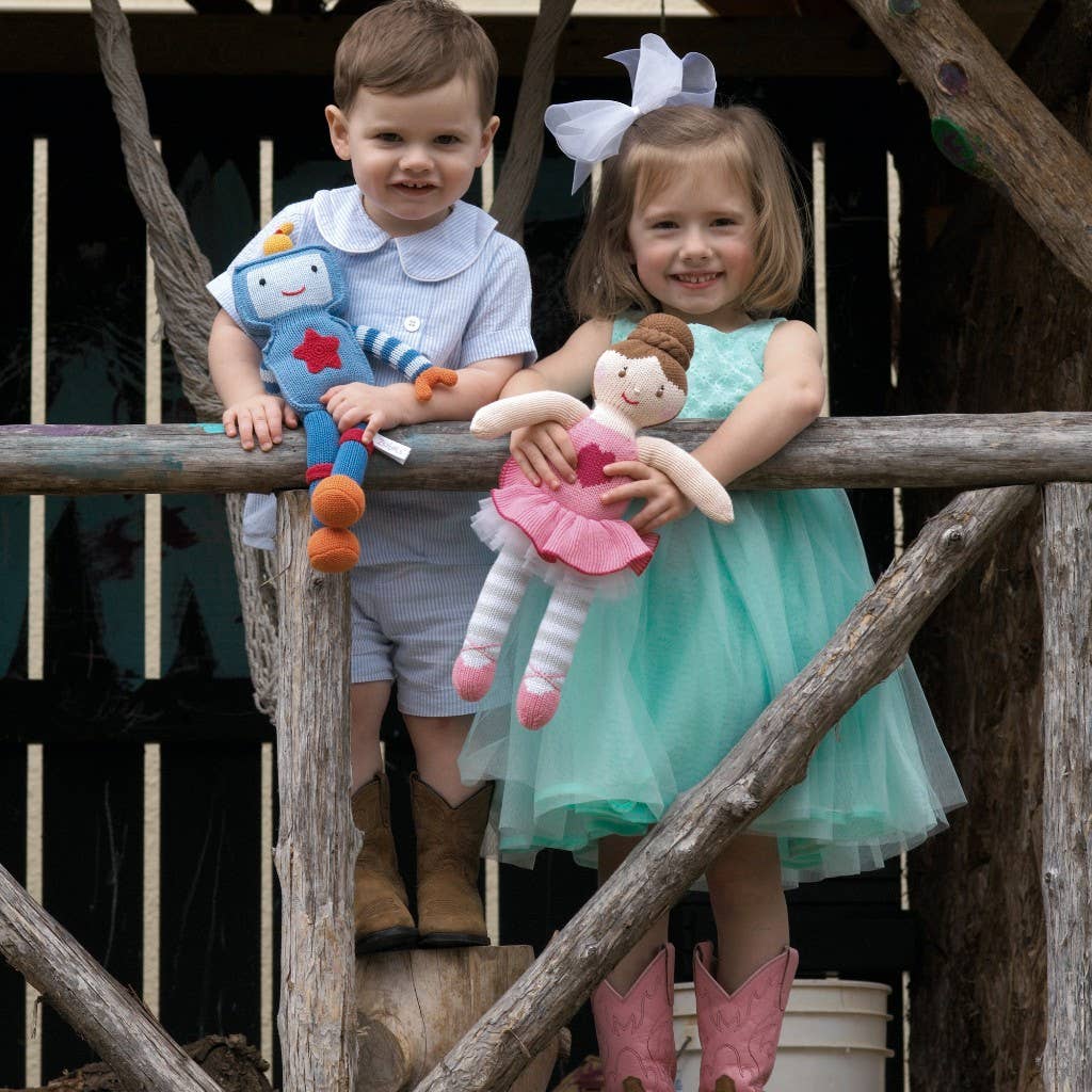 Our robot knit doll is made by hand in the Philippines from eco-friendly dyes and all-natural 100% cotton yarns to make a stuffed animal toy that soft, durable and most importantly safe for kids of all ages! This robot knit doll is easy to care for too - just machine wash and lay flat to dry!