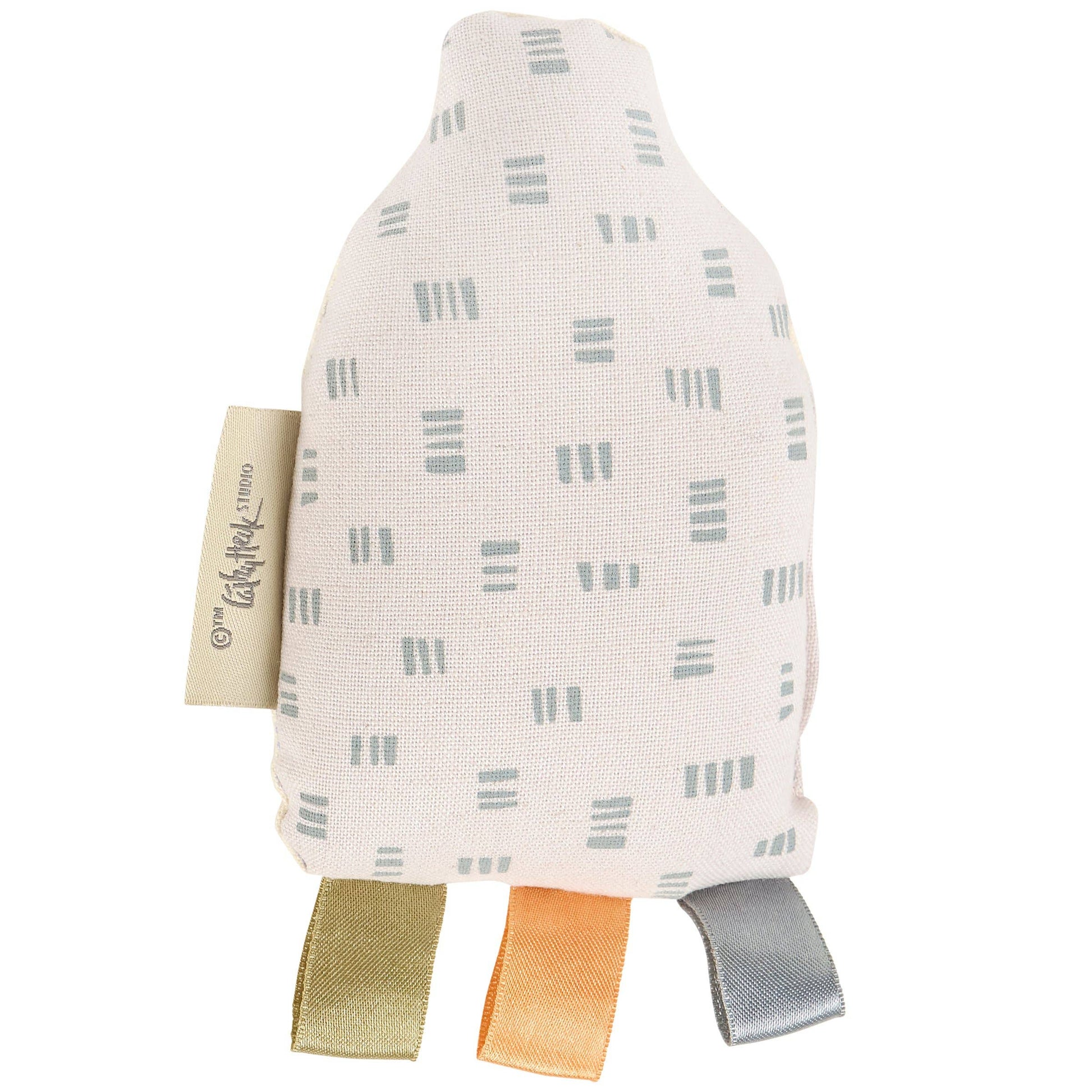 A soft plush toy from our Baby & Kids Collection displaying a charming birdcage design with a bird wearing a top hat replicated from original block print style art. Bird baby toy features engaging sensory elements that encourage touch and play including a squeaker, hanging ribbons, and embroidered details. Our Squeaky Bird baby toy is perfect for play with children 9 months or older and displays nicely on the shelf as child's room décor when not in use. A cute pet-themed gift for baby showers or everyday moments. WARNING: To prevent suffocation, do not put in a crib or near an area where an infant may sleep.